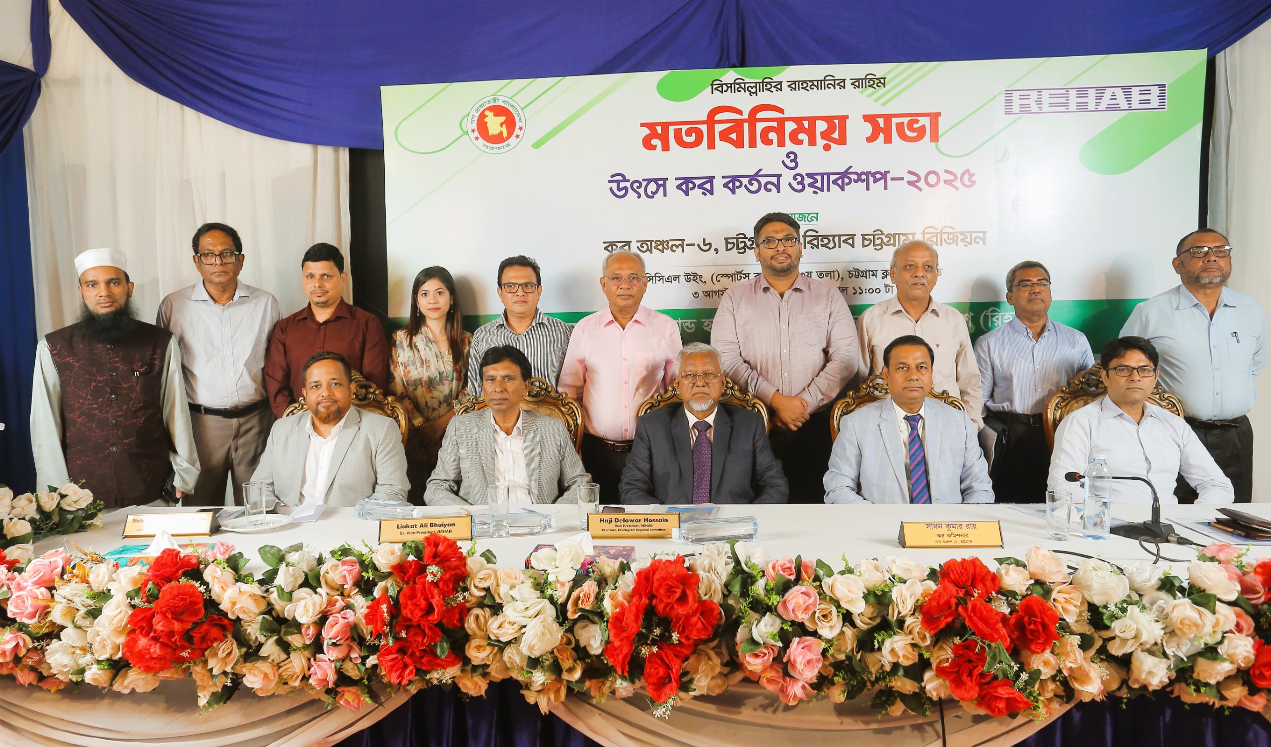 ০৩ আগস্ট রবিবার সকাল ১১:০০ টায় চট্টগ্রাম ক্লাবে কর অঞ্চল-৬, চট্টগ্রাম ও রিহ্যাব চট্টগ্রাম রিজিয়নের যৌথ উদ্যোগে মতবিনিময় সভা এবং উৎসে কর কর্তন ওয়ার্কশপ ২০২৫ অনুষ্ঠিত হয়।