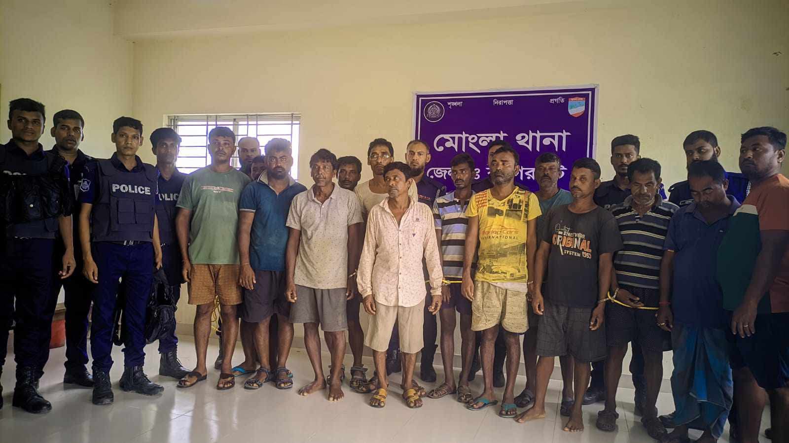 মোংলা থানা ভারপ্রাপ্ত কর্মকর্তা ওসি আনিসুর রহমান আমার দেশকে বলেন,শনিবার দিবাগত রাত তিনটার দিকে নৌবাহিনী একটি ভারতীয় ট্রলারসহ ১৪ জেলেকে মোংলা থানায় হস্তান্তর করে। এরপর ওই রাতেই নৌবাহিনী বাদী হয়ে ভারতীয় এ জেলেদের বিরুদ্ধে থানায় একটি মামলা দায়ের করেন । সামুদ্রিক মৎস্য আহরণ আইন ২০২০ এর ২৫/১ ধরার মামলা হয়েছে, সোমবার দুপুরে ওই জেলেদেরকে বাগেরহাট আমলি আদালত -০৬ এ পাঠানো হলে আদালত তাদেরকে কারাগারে পাঠান।