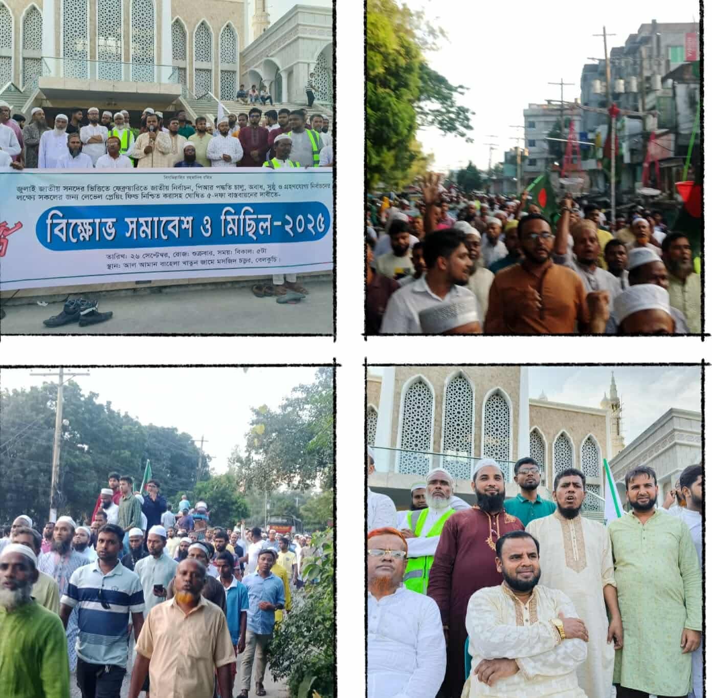 মোঃ শহিদুল ইসলাম খান সিরাজগঞ্জঃ বাংলাদেশ জামায়াতে ইসলামী বেলকুচি উপজেলা শাখার উদ্যোগে জুলাই ঘোষণা ও জুলাই সনদ বাস্তবায়ন এবং সংখ্যানুপাতিক (পিআর) পদ্ধতিতে জাতীয় নির্বাচন অনুষ্ঠানের দাবিতে বিক্ষোভ সমাবেশ ও