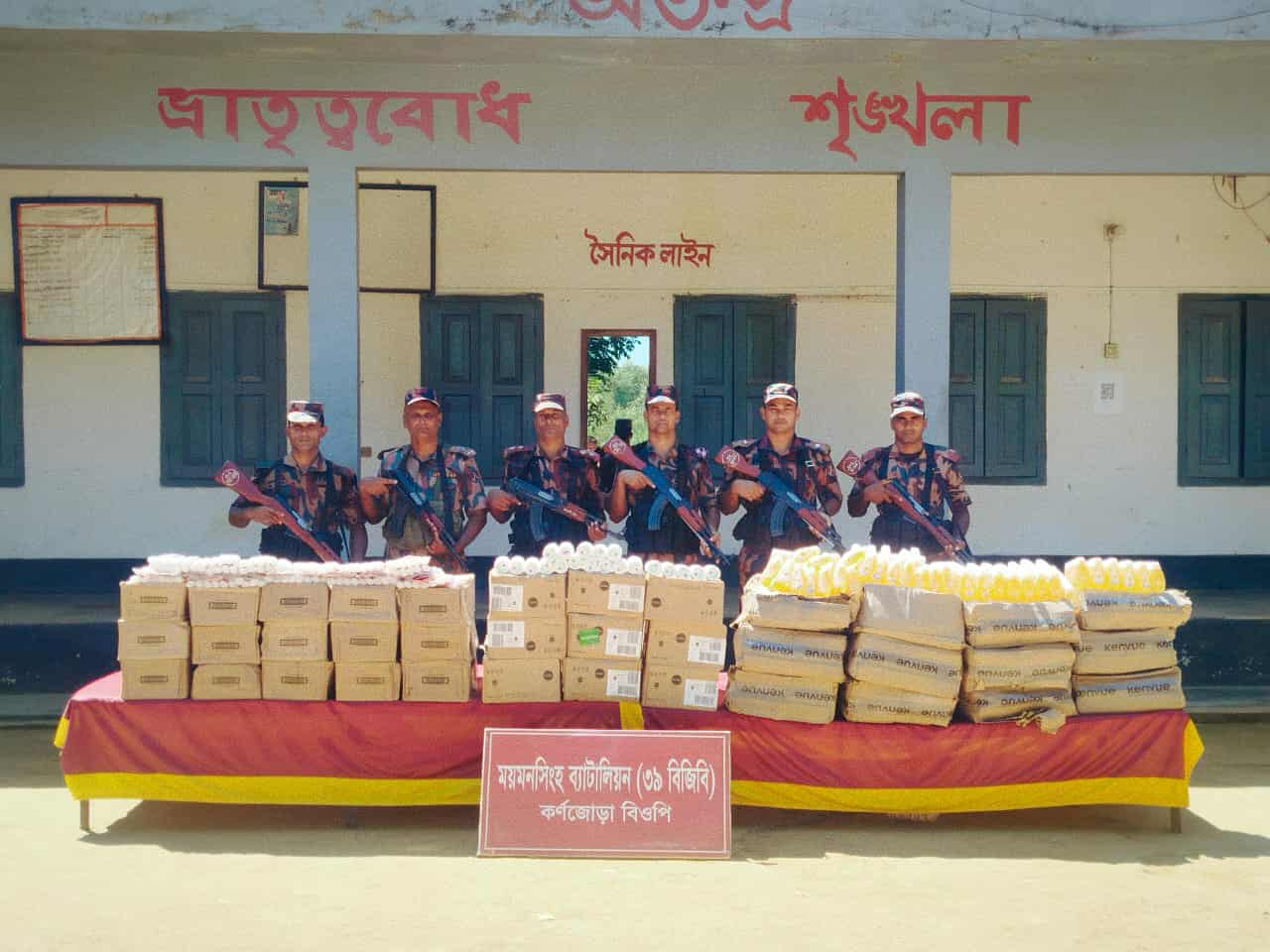 শেরপুর সীমান্তে বিজিবির অভিযানে বারো লক্ষাধিক টাকার মাদক ও কসমেটিকস জব্দ